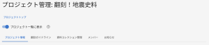 プロジェクト登録後、オーナーや管理者の権限をもつユーザーは、プロジェクトのトップページの右上に「管理メニュー」ボタンが表示されます。管理メニューでは以下の操作ができます。